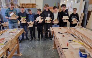 V úterý, 4. listopadu zavítali do našich truhlářských dílen na Bobrkách žáci ze ZŠ Karolinka. Pod vedením našich zkušených učitelů si vyzkoušeli práci se dřevem a vyrobili si vlastní krmítko pro ptáčky. Během dopoledne panovala příjemná pracovní atmosféra, nechyběla chuť učit se nové věci ani radost z hotového výrobku. Děkujeme za návštěvu a věříme, že mezi těmito šikovnými žáky rostou budoucí mistři truhlářského řemesla!