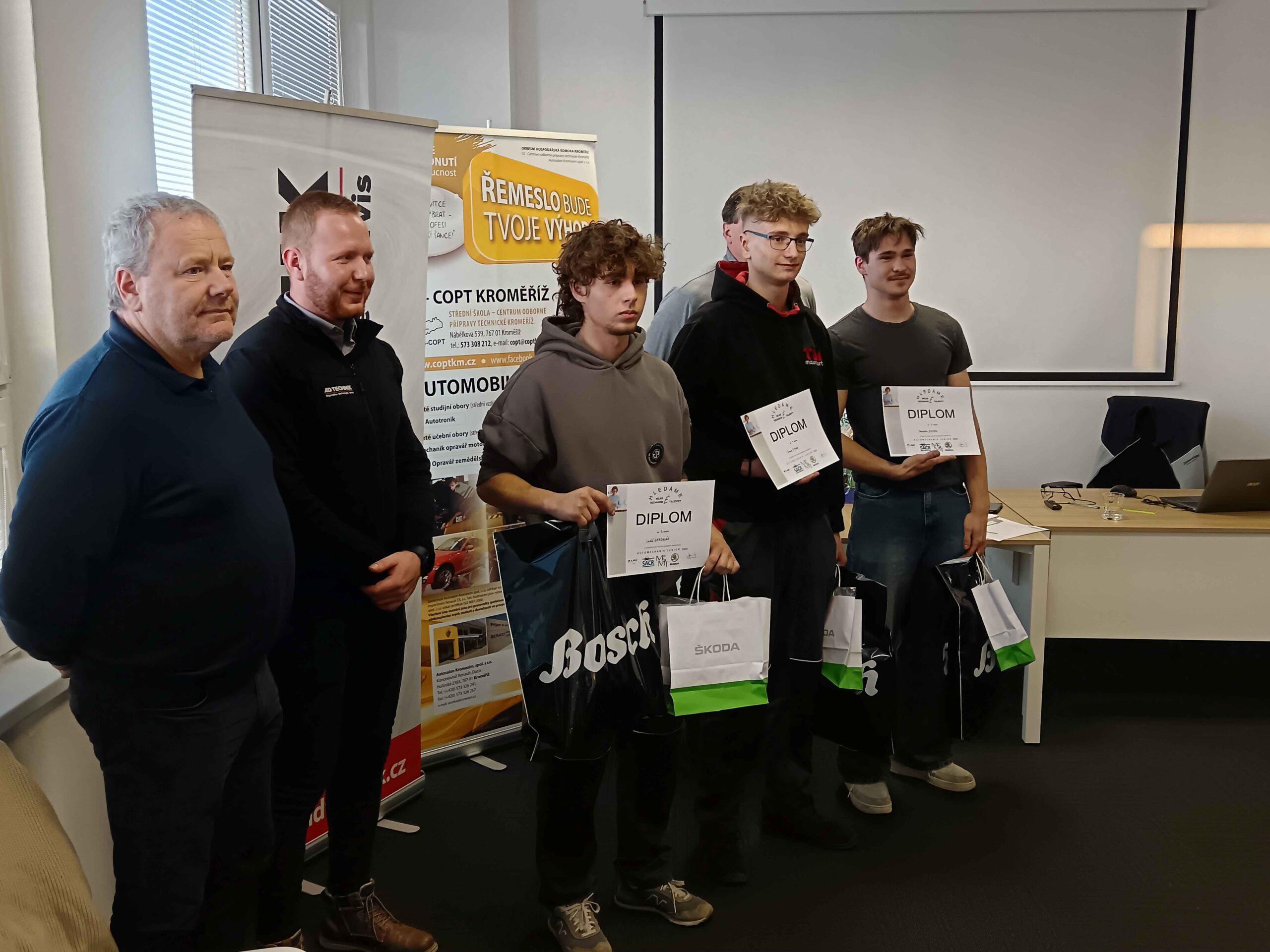 Na krajské soutěži Autoopravář junior Kroměříž, získal 3. místo Lukáš Gargulák a 7. místo David Bechný. Ve tvrdém boji porovnávání vědomostí a znalostí v kategoriích jednotlivců tímto jejich bodová hodnocení vynesly naši školu na celkově velmi solidní 3. pozici v hodnocení družstev. Obě umístění jsou hezkou ukázkou kvalit našich studentů autoopravárenských oborů v přímém porovnání s ostatními školami kraje a konkurencí nejlepších studentů těchto škol. Těsné umístění všech studentů na špici dokazuje nejen stoupající obtížnosti soutěže, ale také zvyšující se úrovně soutěžících. O [...]