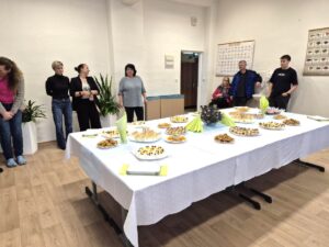 Zahájení jsme si udělali hezké. Všichni byli nadšeni jak z nové učebny, tak z malého pohoštění, kterého se zhostily paní učitelky s vybranými žáky. Přítomni byli i rodiče žáka Filipa Valigury, který se podílel na projektu.