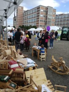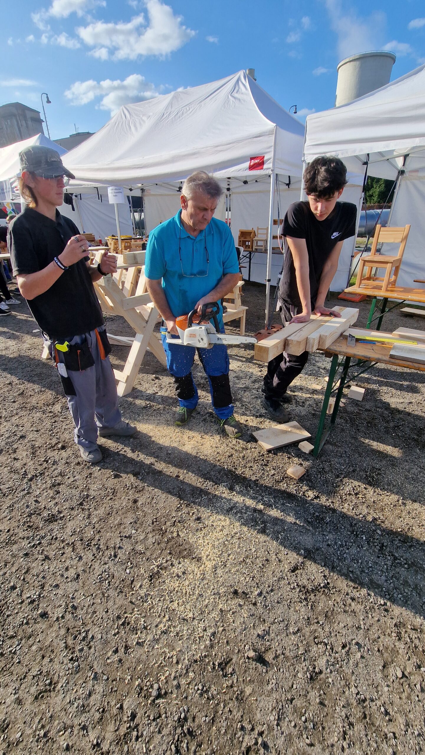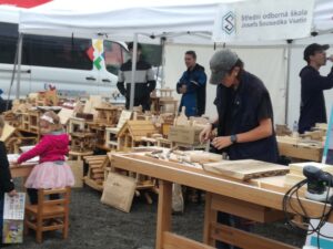 V sobotu, 27. září 2025 se v centru Zlína u Baťova institutu a v jeho přilehlém okolí uskutečnil 15. ročník Dne Zlínského kraje. Tato akce nabídla všem generacím účastníků, malým i velkým, kteří se přišli podívat na bohatý a pestrý program, různé soutěže, výstavy, hudební a taneční vystoupení. Pro děti tu bylo spoustu atrakcí, dále také ochutnávky regionálních produktů, ukázky lidových řemesel, běh Emila Zátopka, závod horských kol, dárcovství kostní dřeně, ukázky záchranářských složek, běh hasičů do schodů na čas, bruslení zdarma a hlavně prezentace středních odborných škol z celého Zlínského kraje. Naše škola svou širokou škálu řemeslných oborů prezentovala za pomocí letáčků a vystavených poutačů a samozřejmě prostřednictvím slov zúčastněných UOV. Přímo v dějišti výstaviště jsme prezentovali obory cukrář, truhlář a tesař. V prodejním stánku u cukrářů se prezentovaly UOV Monika Vašutová a Lidka Vaňová měly vystavené krásné zdobené perníky, koláčky a čajové pečivo, o které byl velký zájem. Návštěvníkům se také velmi líbila maketa dětského dortu, kterou vyrobily žákyně oboru cukrář pod vedením učitelky Moniky Vašutové. Ve stancích pro truhláře a tesaře, kde byli učitelé Jan Kratina a Jan Kratina mladší, byly vystaveny výrobky našich žaků, které obdivovali malí i velcí návštěvníci. Kroutili nevěřícně hlavou, že tyto výrobky vyrobili sami žáci a nešetřili chválou. Ze strany těch menších byl zejména zájem o vyrobené hračky. Avšak svou dovednost a zručnost předváděli žáci i přímo na výstavišti. Vyráběli přímo před zraky návštěvníků valašský stolec, předváděli ukázku rozmanitých truhlářských spojů a umění řezbářství. Kdo měl z návštěvníků zájem, mohli si tyto dovednosti vyzkoušet osobně. Tesaři přímo na místě postavili krmelec pro lesní zvířátka.