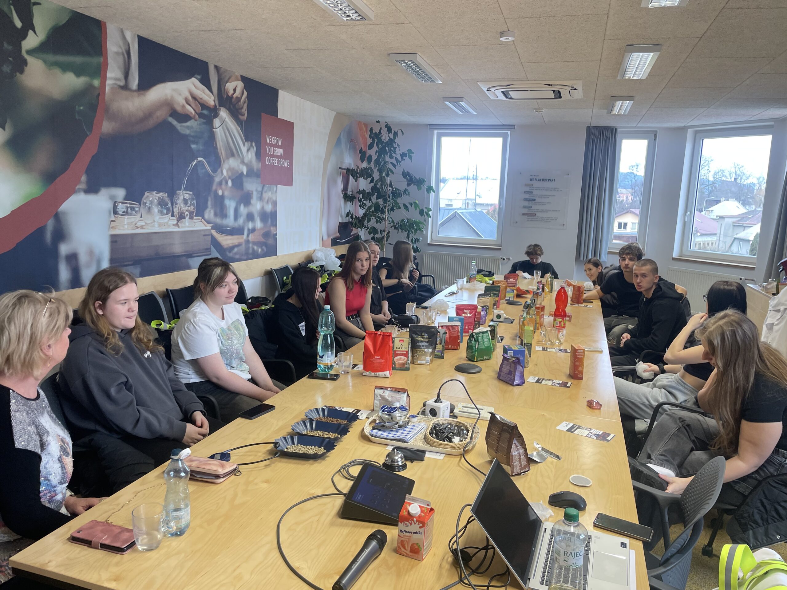 Žáci se mohli podívat přímo do výroby a projít si celý proces zpracování kávy – od pražení až po balení.